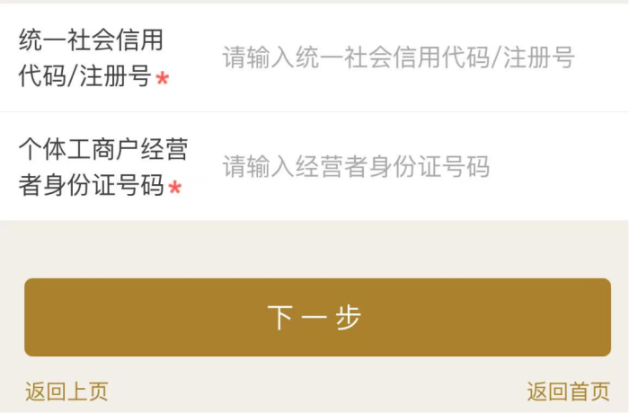 输入营业执照上18位数的统一社会信用代码(营业执照副本上的“1-1”不需要输入)和企业联络员身份证号码或者经营者的公民身份号码。