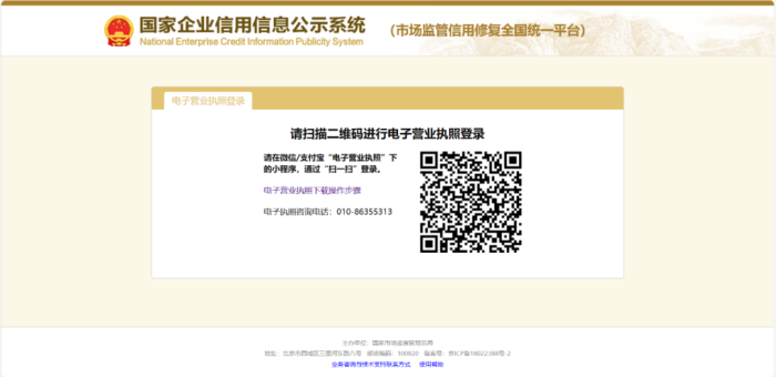 在登录页输入联络员信息或通过电子二维码扫码即可登录系统(个体工商户还可通过经营者信息进行登录)。