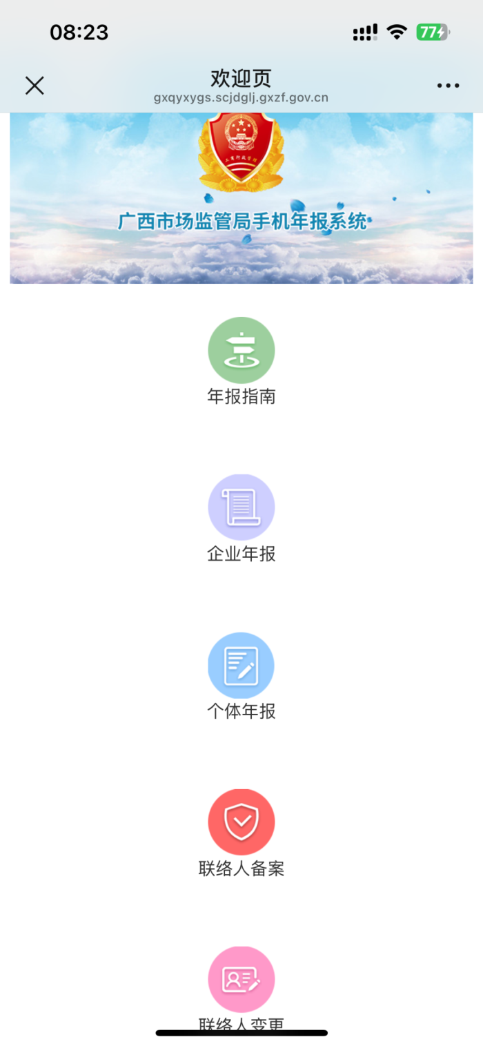 在微信公众号下方“自助办理”中选择“网上年报”,进入年报页面。如下图所示: