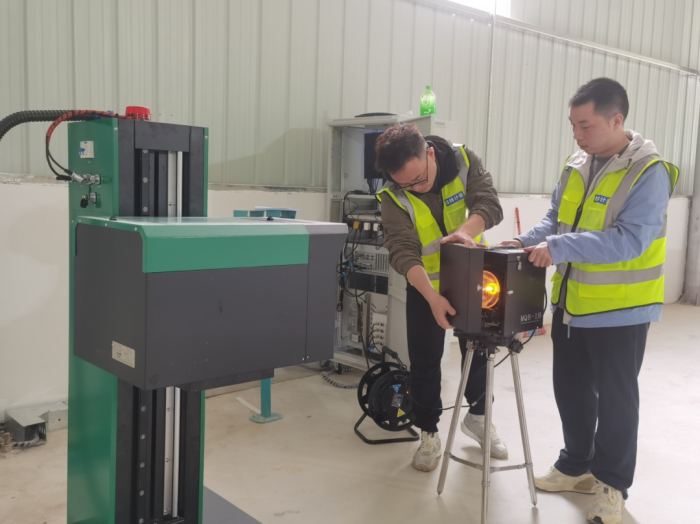 ▲技术人员对机动车检测站前照灯检测仪开展检定