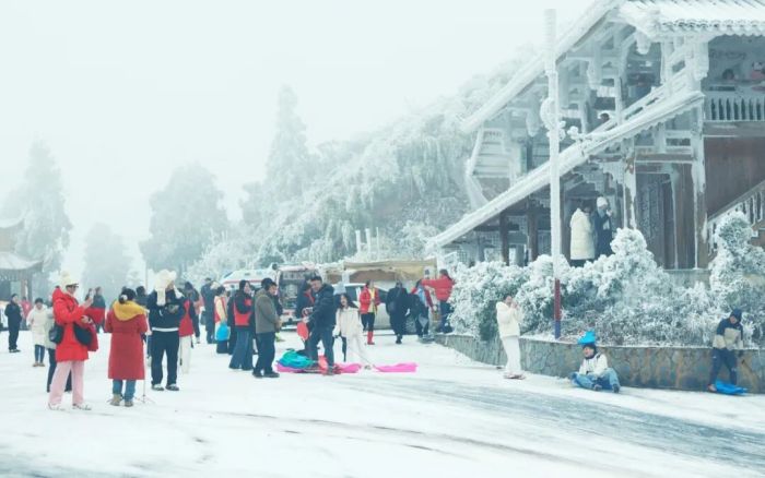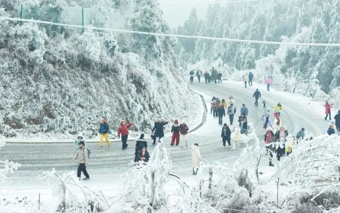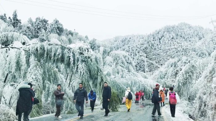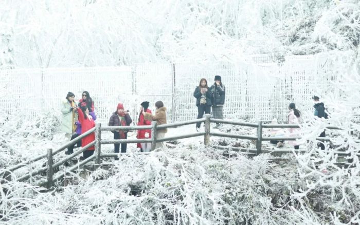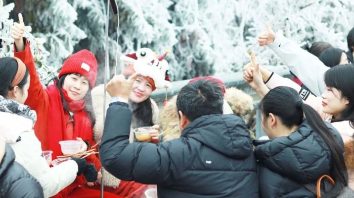 据悉,此次杀猪宴活动将持续至1月24日,眼下仍有大批游客慕名前来打卡体验。气象部门提示,未来几日隘门界仍有雾凇景观,适宜前往观赏。游客出行需做好防寒防滑准备,共赴这场雪景与年味交融的冬日之约。
