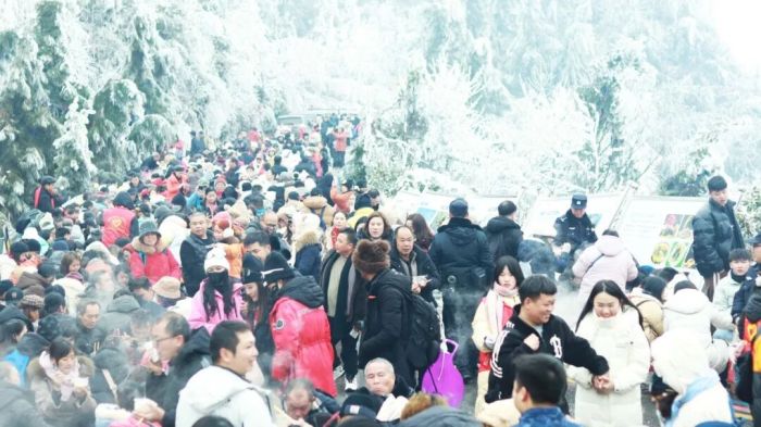 1月23日,资源县隘门界雪景公园特色杀猪宴迎来第二天。零下3℃的高寒山区里,琼枝玉树的雾凇景观与热气腾腾的流水席相映成趣,吸引区内外游客纷至沓来。这场为期三天的冬日盛宴,让南方冰雪“冷资源”变身文旅“热引擎”。