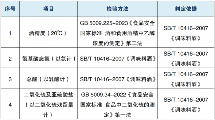 本次比较试验依据有关标准测试4项指标,包括“酒精度” “氨基酸态氮”“总酸”3项理化指标,“二氧化硫”1项安全指标。