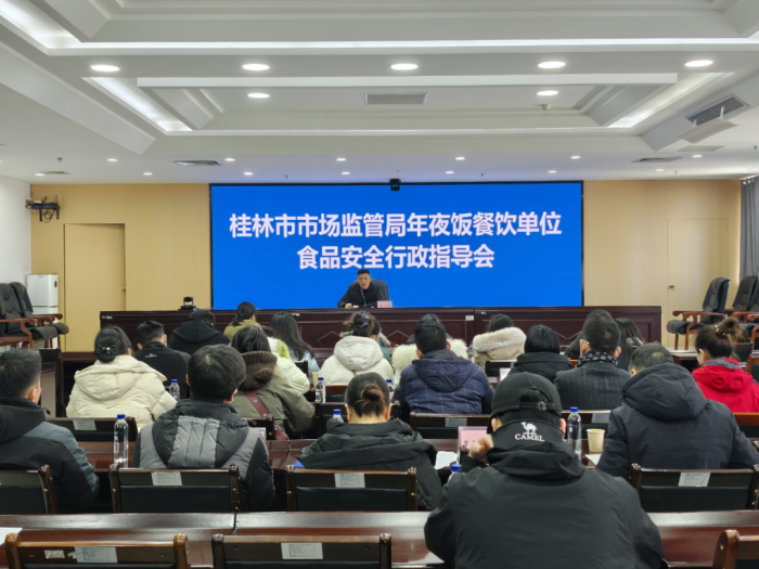 1月22日,桂林市市场监管局针对桂林餐饮市场实际情况,组织全市连锁餐饮企业代表召开年夜饭餐饮单位食品安全行政指导会,细化保障举措,压实监管责任与企业主体责任。