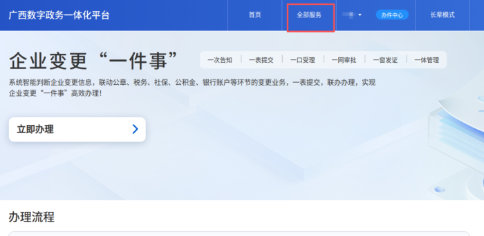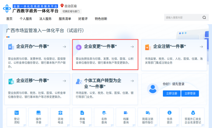 登录“市场监管准入一体化平台”,选择“企业变更‘一件事’”