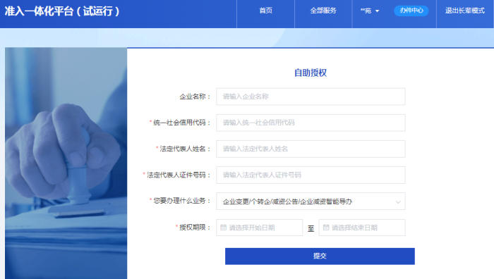 填写“自助授权”信息,或者从已绑定企业列表中选择