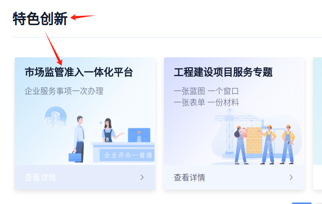 找到“特色创新”点击进入“市场监管准入一体化平台”