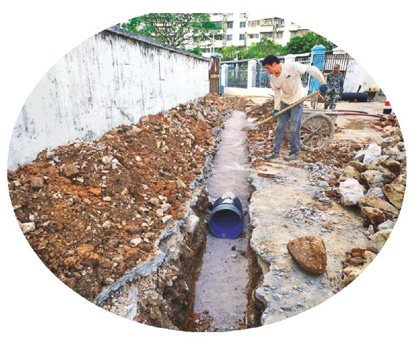 ▲金隆苑小区的排污管道在进行改造。 (叠彩区委宣传部供图)
