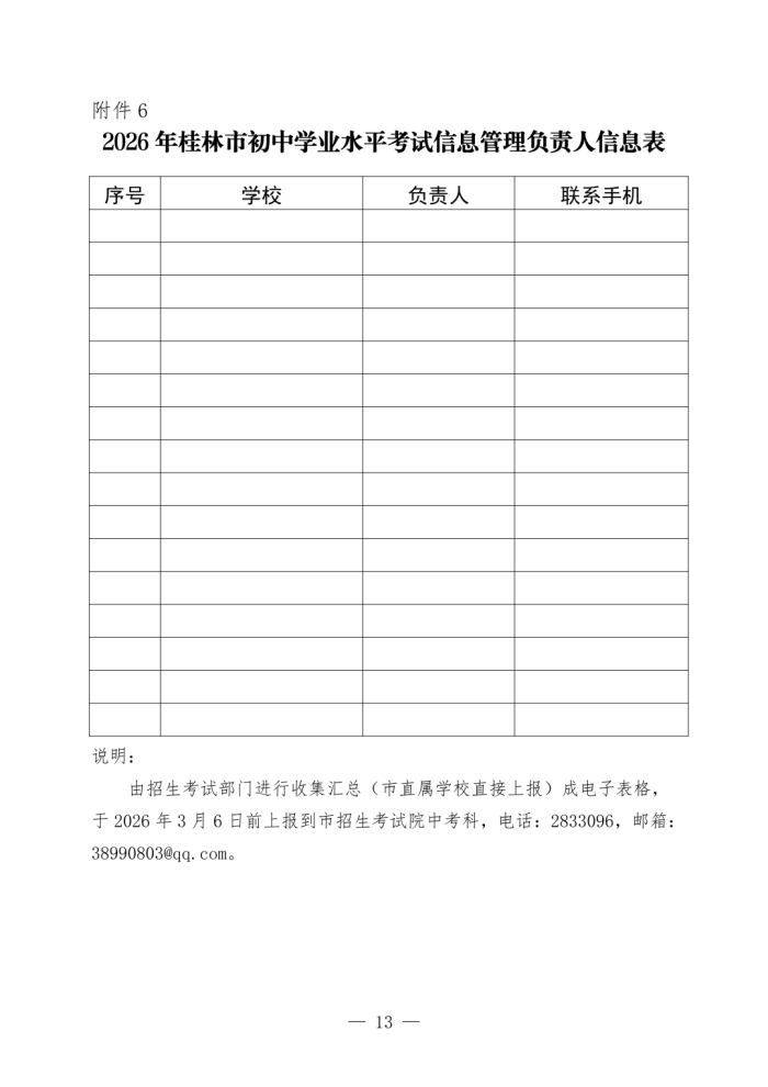 6.2026 年桂林市初中学业水平考试信息管理负责人信息表