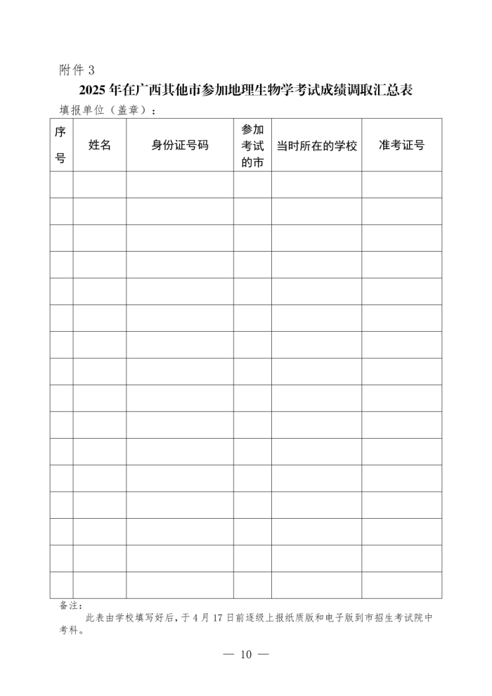 3.2025 年在广西其他市参加地理生物学考试成绩调取汇总表