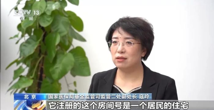 国家医保局基金监管司监管二处副处长 寇玲:这家公司的注册地是在一个居民住宅区内,他注册的房间是一个居民的住宅,没有任何企业经营的状态。房主对这家公司是毫不知情的,对公司的实控人、法定代表人也都不认识,检查组也到物业和街道办进行了调查,发现根本没有这家公司存在过。
