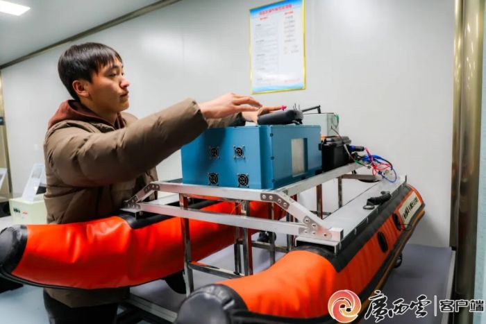 桂林理工大学的学生在调试自主研发的水深探测激光雷达。广西云-广西日报记者 游拥军 摄