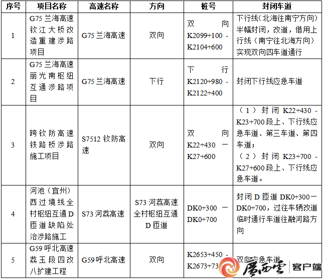 为帮助市民顺畅返乡返城,自治区高速公路发展中心同步公布了春运期间易拥堵路段、收费站及繁忙服务区名单。其中,28个收费站易发生拥堵缓行,包括新地站、塘步站、归义站、那洪站、安吉站等;43个路段(枢纽互通)易出现拥堵缓行,涵盖G2518深岑高速岑罗段、G65包茂高速桂三段、G72泉南高速那容互通至伶俐段等;26个服务区(停车区)预计较为繁忙,如钦州西、合浦、伶俐、崇左等服务区。