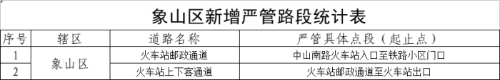 一、象山区新增严管路段范围