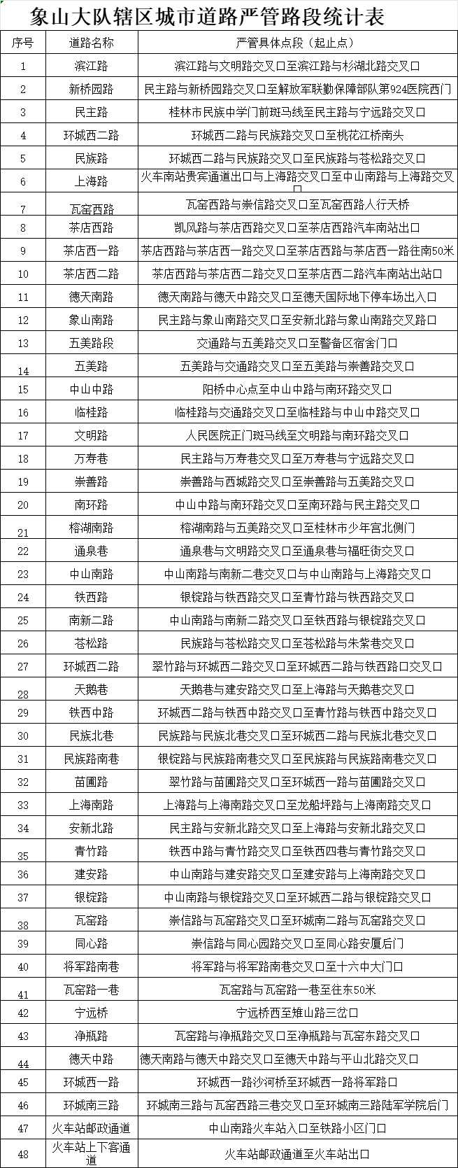桂林市公安局交通管理支队关于设置(调整)道路交通秩序严格管理路段的通告