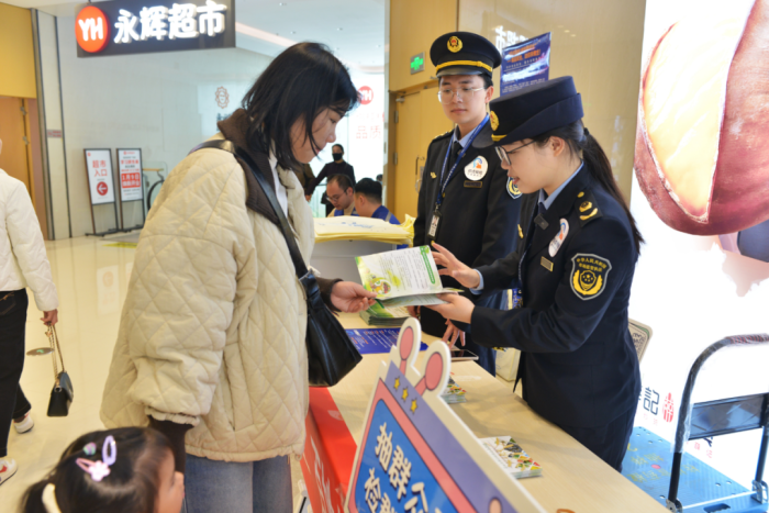 ▲市场监管执法人员向群众介绍“你点我检”活动参与方式(肖玲玲摄)