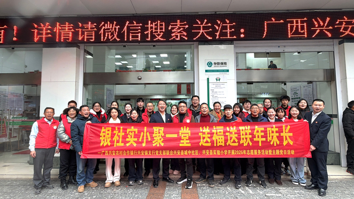 新春渐近,年味愈浓。2月4日,兴安农合行联合兴安县城中社区、兴安县实验小学,在兴安农合行城中支行开展“银社实小聚一堂送福送联年味长”主题党日暨志愿服务活动。活动以党建为引领,通过写春联、送汤圆、反诈宣传等便民举措,为辖区群众送去新春祝福与贴心守护,切实践行“润心安万家”的服务理念。