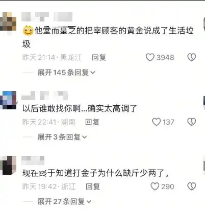 2月5日,此事登上热搜,引起部分网友的质疑:对顾客的黄金进行打磨时,散落的金粉不应该归顾客所有吗?店里出现如此大量的金粉,是不是说明他们在宰客、偷克重?