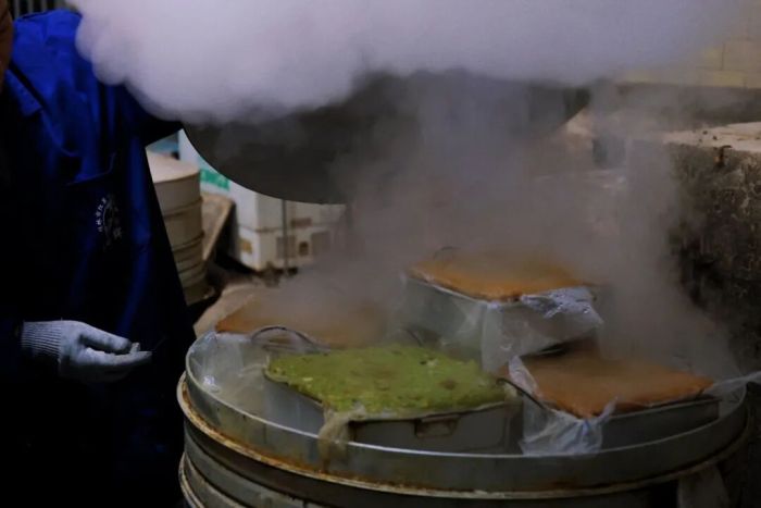 船上糕的口味,也饱含着生活的智慧与温情。咸口的船上糕,将糯米与蒜叶一同打碎成浆,再混入炒香的腊肉、芋头,蒸制而成,色泽翠绿,咸香扑鼻。甜口的年糕,则用红糖水搅拌糯米粉作底,层层裹上细腻的红豆沙,软糯可口。无论是哪一种,出锅时那扑鼻的香气,便是最纯正的年味。