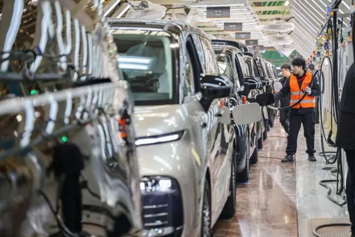 2026年2月3日,在浙江义乌市吉利领克汽车义乌工厂的总装车间内,技术工人正在自动化生产线上装配新车。金思成摄