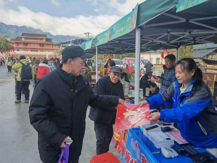 庆典现场氛围热烈,桂林移动九屋网格党员服务队以“臻心服务”专项活动为依托,在现场设立了暖心服务展台,结合瑶乡群众的实际需求,开展了一系列接地气、有温度的便民志愿服务,让群众在喜庆的氛围中感受到移动关怀。展台前,志愿者们耐心为瑶民免费测量血压,仔细询问老年群众的身体健康情况,讲解一些慢病防控的小常识,守护群众身心健康;同时,将为群众准备了装满红包、福字的福袋一一送到瑶民手中,以点滴行动传递节日祝福和桂林移动的“臻心”暖意。
