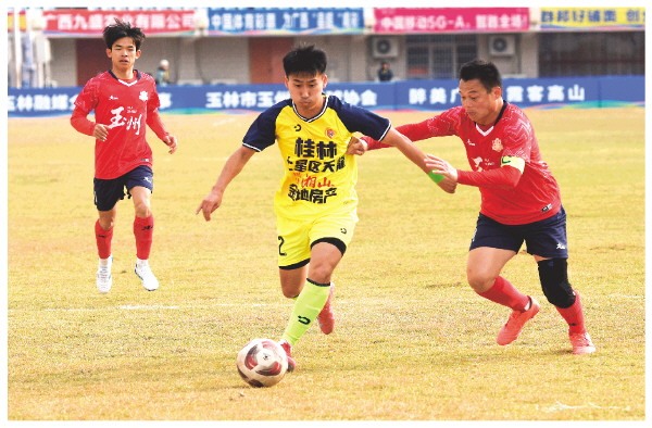 ▲桂林市七星区队(黄)与玉林市玉州区队(红)比赛现场。