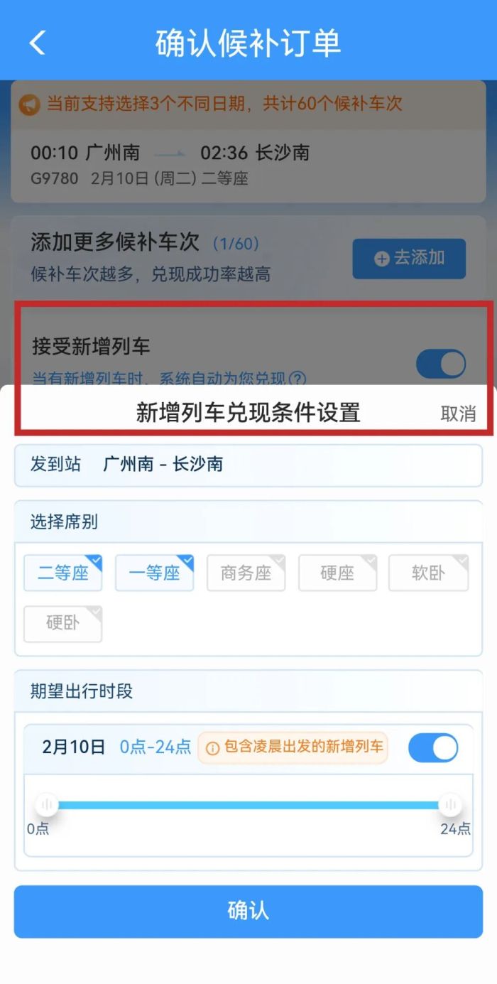 提交订单时,一定要勾选“接受新增列车”。当出现加开列车时,系统会为你自动兑现。