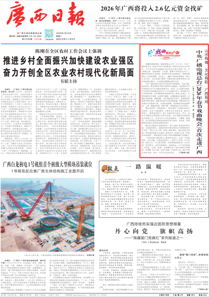 国潮澎湃满梨园,锦绣欢歌过大年。2月9日,中央广播电视总台《2026年春节戏曲晚会》新闻发布会在北京举行。今年总台春节戏曲晚会首次走进山清水秀的广西,以“骏驰山海 戏韵春晖”为主题,植根中华戏曲艺术沃土,描绘百姓美好生活图景,彰显绿水青山亮丽底色,唱响各族群众心手相连赞歌。发布会上,揭晓了晚会特别嘉宾“数字人刘三姐”,这位家喻户晓的广西歌仙将以崭新形象登上春节戏曲晚会舞台,让经典彩调剧焕发新的光彩。