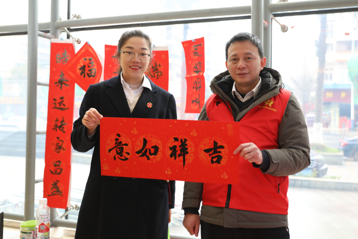 活动现场张灯结彩、暖意融融,翰墨书香与欢声笑语交织相融。本次活动内容丰富多样、趣味横生,吸引了各族群众踊跃参与。手写春联区最为热闹,有书法特长的员工及员工家属主动担当“送福使者”,铺纸研墨、凝神挥毫,将马年吉祥寓意与金融惠民初心凝于笔端,一副副遒劲有力的春联和“福”字跃然纸上。拿着墨迹未干的春联,群众由衷赞叹:“手写的春联难能可贵,这个新春年味更浓!”现场群众纷纷点赞,或驻足观赏、细细品味,或跃跃欲试、亲身体验,沉浸式感受中华优秀传统文化的独特魅力。