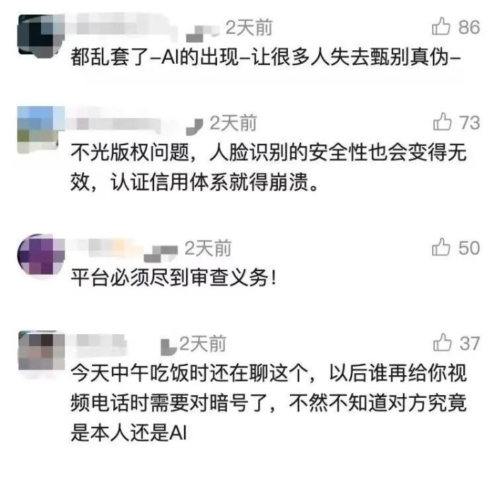 二、微信账号“浮萍9419”、微博账号“乘风已归来”、快手账号“东东情感”等,以AI换脸、声音克隆等方式,假冒运动员、演员、主持人、企业家等公众人物,发布不实言论,借此吸粉引流,或未经授权,售卖AI生成的公众人物“送祝福”“拜年”等视频,从中不当牟利。相关账号已被依法依约处置。
