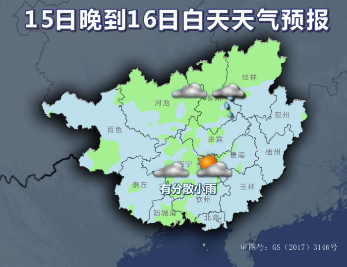 15日,全市多云间阴天有分散小雨。偏南风转偏北风2-3级。最低气温:北部8-10℃,中南部11-14℃;最高气温:22-26℃。