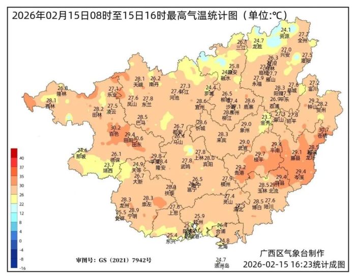 预计,2月15日夜间冷空气开始影响桂北,受其南下影响,16-17日全区各地日平均气温下降6~8℃、局地10℃以上,高寒山区局地有冰冻;冷空气影响前,15-16日我区部分地区有雾或回南潮湿天气。