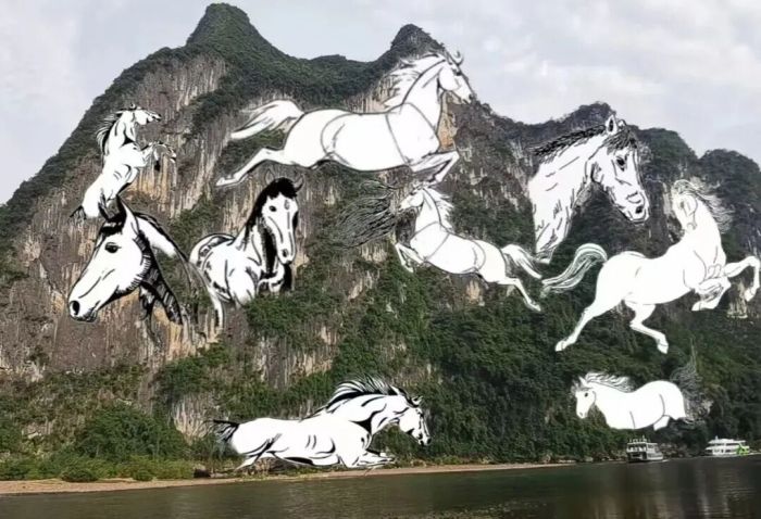 今天,九马画山渡口旁,无数游客依然在仔细辨认崖壁上的马匹图案,这一传统活动从未中断。游船缓缓驶过,山壁上的马儿仿佛正欲挣脱束缚,奔向更广阔的未来。不久的将来,游客或许能借助AR设备,看到九匹神骏挣脱山壁束缚,在漓江水面奔腾的全息景象。