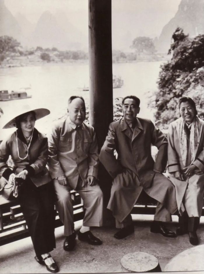 1960年周恩来陈毅邓颖超张茜同志在阳朔迎江阁(资料图片)