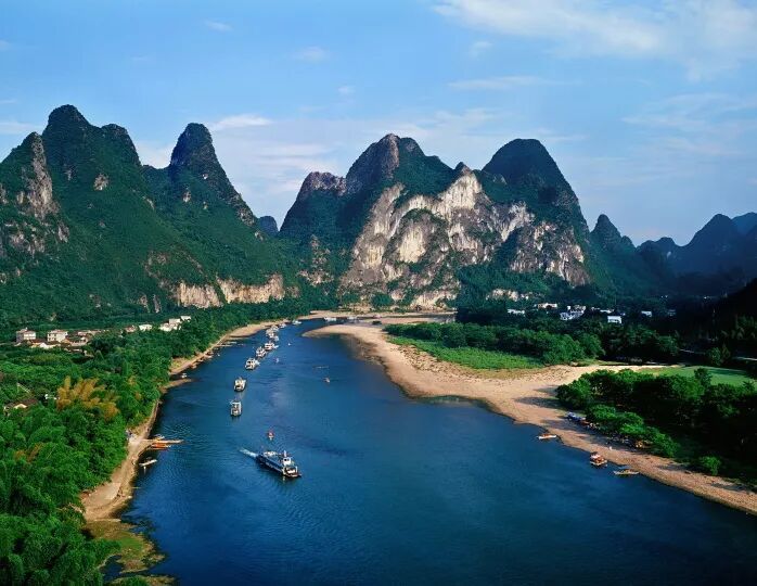 阳朔竹筏漂流、漓江徒步、骑行十里画廊等已成标志性旅游体验项目,漓江开通了包括杨堤-兴坪、兴坪-九马画山在内的19条航线。仅此一项,2025年就接待游客近500万人次。