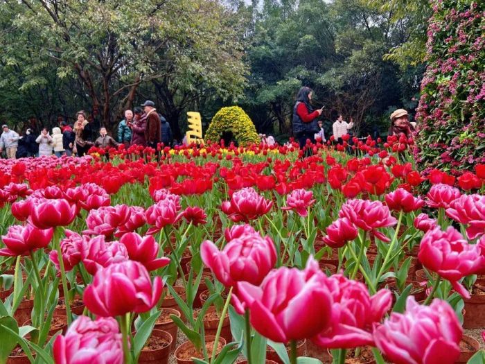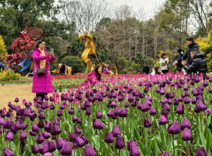 “每年大年初一都要来訾洲看花,这已经是我们家的老传统了。”市民蒋女士带着家人在花丛中定格美好瞬间,脸上满是笑意,“花开得越艳,心里越喜庆,新的一年也更有奔头。”来自广东的游客张先生则连连赞叹说:“桂林山水甲天下,配上绚烂的郁金香花海,简直是双重惊喜。能在春节感受这样的美景,这趟旅途太值了。”