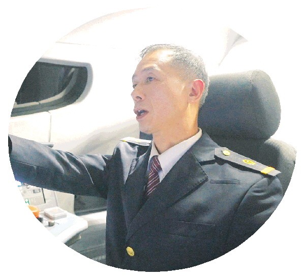 ◤动车组司机黄保明驾驶动车组,认真执行作业标准。 记者苏展 摄