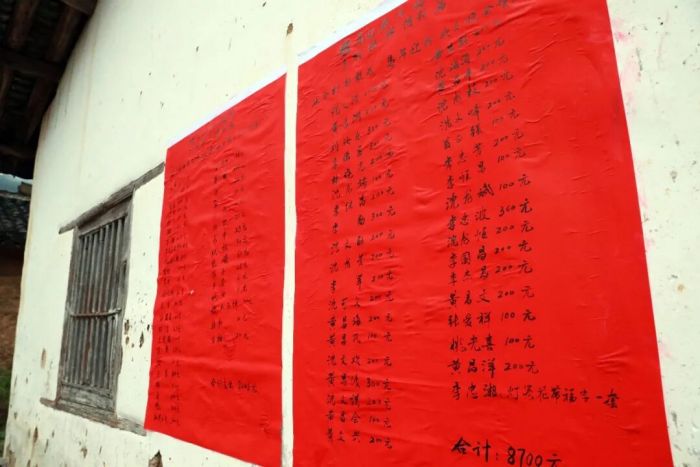 屯里的公告栏上,一张写得工工整整的账目明细,格外显眼。那是村民李勋和黄昌渊特意记录的,一笔一画,清晰明了。总收入8700元:沈文浩2000元、李儒昌300元、李继昌200元……