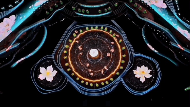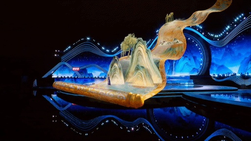 《墨客逍遥游》里,实景舞台叠合虚拟视效,徐徐展开会呼吸的《西园雅集图》,徐霞客漫步其中,与韩愈、柳宗元、米芾、王阳明悠然相逢,融汇成一席诗画共生的雅韵想象。