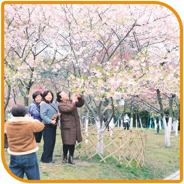 图②:大年初四,赏花进行时。2月20日,桂林天气放晴。在南溪山公园内,盛放的樱花惹得游人纷至沓来。 记者苏展 摄