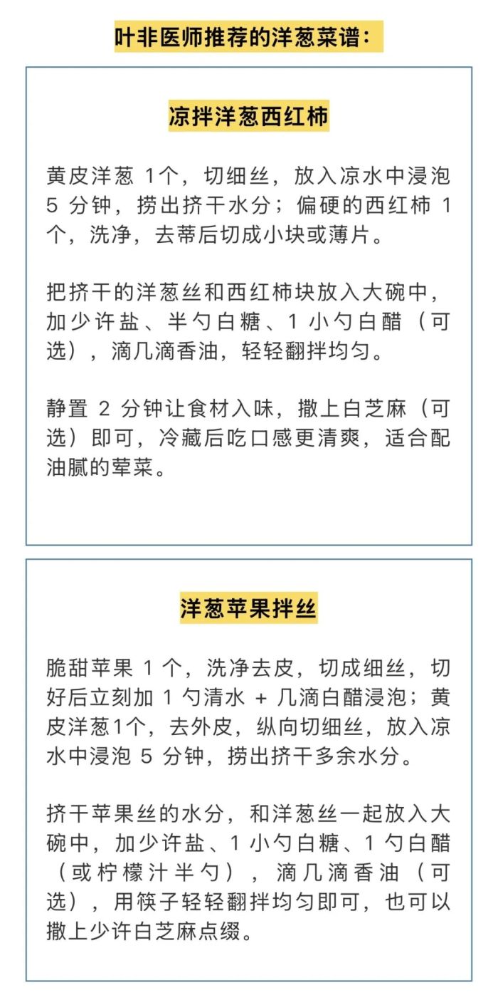 此外,洋葱丝蘸酱、洋葱炒蛋、洋葱炒肉片,做荤菜时放一些洋葱做辅料,也是很好的选择。