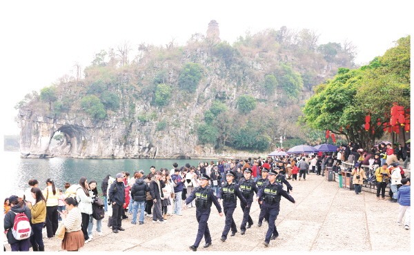 春节假期的桂林,山水间升腾着节日的暖意,也承载着平安的期盼。面对如潮的游客,桂林市公安局以“旅游警务”为抓手,将警力沉在一线、服务放在身边,用脚步丈量平安,用守护温暖旅途。