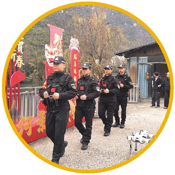 春节期间,执勤警力在象山景区巡逻。 通讯员易丹 摄