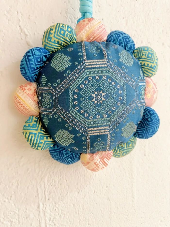 陈嘉桦(Ella)在视频中展示壮锦小太阳挂件