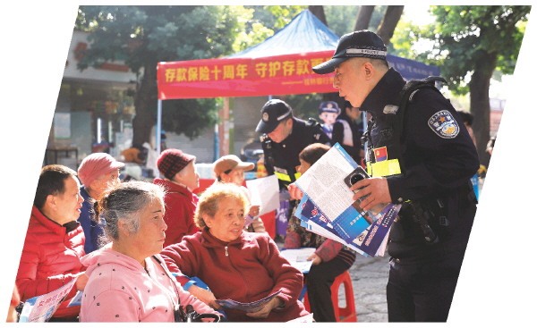 秀峰公安分局丽君派出所组织民警辅警来到篦子园社区开展反诈宣传活动。 饶承芃 摄
