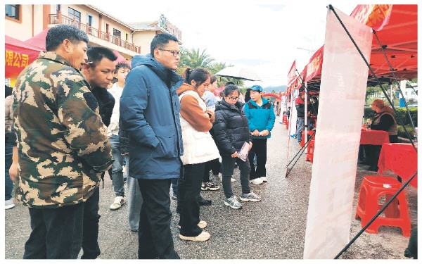 ▲现场求职者驻足浏览招聘海报,认真筛选意向岗位。 通讯员陈瑶琼 摄