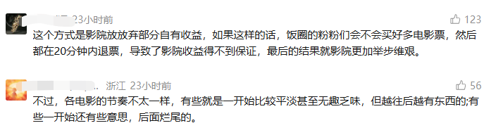 观众只要在影片放映20分钟内觉得体验不佳,即可申请退还40%的票价,无需再为“踩雷”的电影默默买单。