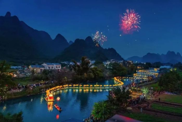 桂林阳朔特色非遗民俗活动“金龙巡游”。图源:阳朔资讯