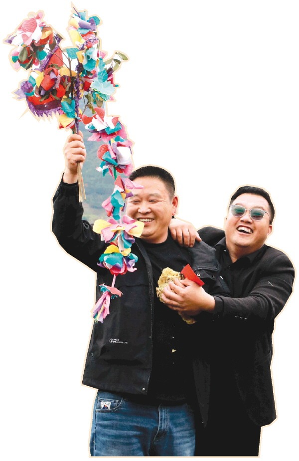 按照传统习俗,两位新福主将承担次年花炮制作的重任,这份“头彩”不仅象征着全年的福运安康,更承载着守护非遗、传承民俗的责任。“我就是本村的,坡上面黄色房子就是我家,能抢到花炮是我的福气。”新福主莫世辉激动地说,“明年我一定牵头做好花炮制作,把这项老传统办得更热闹,让更多人感受瑶乡文化的魅力,欢迎大家来石口过节。”另一位福主李振鹏也十分激动:“能抢到炮头是我的福气和缘分,新的一年祝大家事事顺利。”