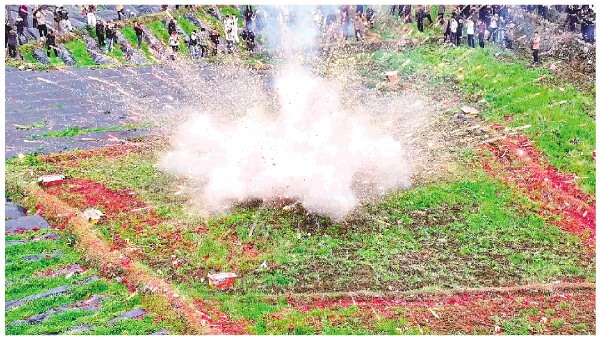 花炮炸开瞬间。 石巧 摄